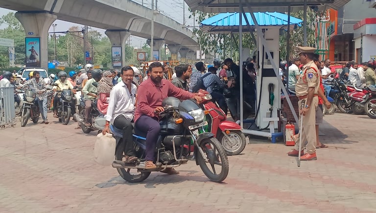 రష్యా యుద్ధం నేపద్యం లో నగరం లో పెట్రోల్ కొరత వల్ల పలు పెట్రోల్ బంకుల వద్ద భారీగా క్యూ కట్టిన వాహనదారులు