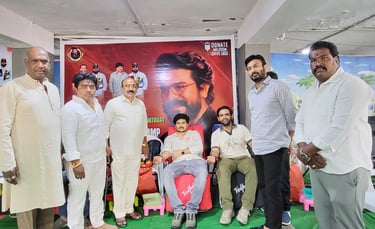 ఈ రోజు మెగా అభిమానులు సందీప్ దానపాల్,అరవింద్,చెర్రీ ల ఆహ్వానం మేరకు ముఖ్య అతిథులుగా జనసేన పార్టీ జనరల్ సెక్రటరీ రామ్ తాళ్లూరి సైబరాబాద్ మున్సిపల్ కో- ఆర్డినేటర్ ముమ్మారెడ్డి ప్రేమ కుమార్ బాలానగర్ లోని మైత్రీ విమల్ థియేటర్ లో జరిగిన మెగా పవర్ స్టార్ రాంచరణ్ 41వ పుట్టినరోజు సందర్భంగా రక్తదాన శిబిరాన్ని ప్రారంభించారు.ఈ సందర్భంగా వారు మాట్లాడుతూ ఒక రక్తదానం ద్వారా 3 మంది ప్రాణాలను రక్షించే అవకాశం ఉంటుంది.తలసేమియా,ప్రమాదాలు,శస్త్రచికిత్సలు వంటి అత్యవసర పరిస్థితుల్లో రక్తం ఎంతో అవసరం అని రక్తదానం చేస్తున యువతను నిర్వాహకులను అభినందించారు.ఈ కార్యక్రమంలో జనసేన నాయకులు భోగాది వెంకటేశ్వర రావు, కొల్లా శంకర్, గడ్డం కిషోర్ నాగరాజు, పులగం సుబ్బు, నరేశ్ తదితరులు పాల్గొన్నారు.