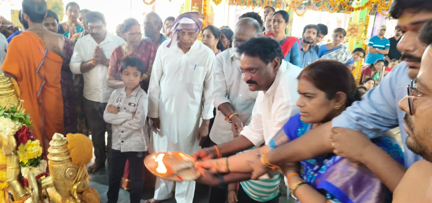 టుడే టైమ్స్ న్యూస్ (హైదరాబాద్), మార్చ్ 28 2026 : ఎలమంచి రాధాకృష్ణ గారు మరియు ఝాన్సీ భాయ్ దంపతులు భక్తిశ్రద్ధలతో రామాలయానికి వెండి దార్వాజాల నిర్మాణం కోసం 30 కిలోల వెండిని సమర్పించారు.ఈ సందర్భంగా ఆలయ అర్చకులు ప్రత్యేక పూజలు నిర్వహించి దంపతులకు ఆశీర్వాదాలు అందజేశారు.రామాలయం అభివృద్ధికి ఈ విరాళం ఎంతో ఉపయోగపడుతుందని ఆలయ నిర్వాహకులు తెలిపారు.