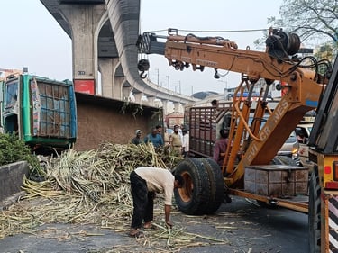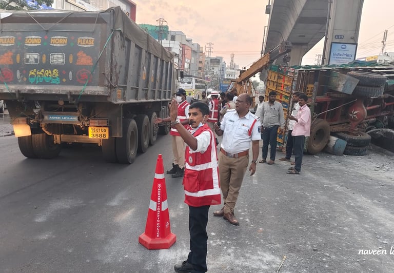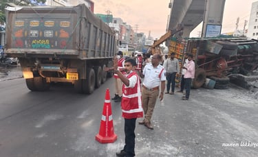 టుడే టైమ్స్ న్యూస్ (హైదరాబాద్), మార్చ్ 28 2026 : కూకట్పల్లి బిజెపి ఆఫీస్ ముందు రాత్రి మూడు గంటలకు బోల్తా పడిన చెరుకు లారీ డ్రైవర్ కు తీవ్ర గాయాలు ఆస్పత్రికి తరలింపు, ఉదయం ట్రాఫిక్ జాము, ట్రాఫిక్ క్లియర్ చేస్తున్న పోలీసులు