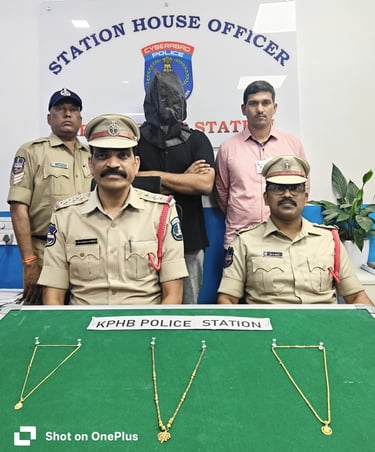 టుడే టైమ్స్ న్యూస్, మార్చ్ 28 2026 : కేపీహెచ్ బి సిఐ రాజశేఖర్ రెడ్డి తెలిపిన వివరాల ప్రకారం గుంటూరులోని చిలుకూరు చెందిన పెడవల్లి సంజయ్ కుమార్ 25 సంవత్సరాల సంజయ్ ప్రైవేట్ ఉద్యోగం చేసుకుంటూ మియాపూర్ లోని హఫీజ్పేట్ లో నివాసం ఉంటున్నాడు.నిందితుడు చోరీ పాల్పడిన దొంగిలించిన సుమారు రూ.2,80,000 విలువ గల బంగారు ఆభరణాలను పోలీసులు స్వాధీనం చేసుకున్నారు. అనంతరం నిందితుడిని న్యాయస్థానంలో హాజరుపరిచారు.గతంలో కూడా ఆంధ్ర తెలంగాణ రాష్ట్రాలలో కలిపి పది గృహ చోరీ కేసులు ఉన్నాయని తెలిపారు.కేపీహెచ్బీ పోలీసులు ప్రజలకు సూచిస్తున్నది ఏమనగా ఇళ్లను ఖాళీగా వదిలి వెళ్లే సమయంలో తగిన జాగ్రత్తలు తీసుకోవాలని అనుమానాస్పద వ్యక్తులు కనిపించిన వెంటనే సమీప పోలీస్ స్టేషన్కు సమాచారం అందించాలని ప్రజలు అప్ర