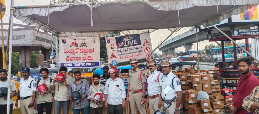 కేపీహెచ్బీ పోలీసుల “Arrive Alive” కార్యక్రమం – హెల్మెట్పై ప్రత్యేక అవగాహన